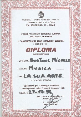 DEDICATO A UN’AMICA /Ti immagino qui nei /sogni miei tu, /un amico un tesoro/ è cosi che si dice. /Un amico un tesoro /ed è la verità, /una verità grande/ che descriver non so. /A guardarti ammirarti /sempre senza sfiorarti, /un amico non può/ è una gran crudeltà. /Quei ricordi stupendi /che ti restano in mente /sempre vivi e lontani, /tra le braccia di lui. /E ti dedico un sogno/ quella amica sei tu,/ un risveglio un po’ duro/ perché non ci sei più, /mi abbracciavi affettuosa /però amavi lui, /un amico sincero/ ora qui sono io./ Quando il tempo crudele/ sarà vecchio con noi, /più lontano è il ricordo/ che svanisce cosi,/ guarderò l’orizzonte/ dentro il cielo di sera,/ una rondine in volo/ forse parla di te. “Dotato di viva intelligenza, di ingegno creativo ed eclettico, Michele Bortone, cantante, scrittore e paroliere compositore, ha composto poesie di rara semplicità e purezza lirica. Dedicato a un’amica è una poesia bella nella delicatezza dei pensieri, nella spontaneità dei sentimenti, sintesi e contrasto di gioia e di speranza, di luce e di ombra, percorsa e tenue e palpabile nostalgia. L’anima sensibile e sensitiva del poeta, Luganese per adozione, irpino… Lacedonia per nascita, si esalta e si stempera nella contemplazione del muto orizzonte, del roseo tramonto, nell’ascolto rapito di un canto di rondini”?!.“La stampa italiana… estera ne parla… la creatività di Michele Bortone, un emigrante e lavoratore della musica”?!:.