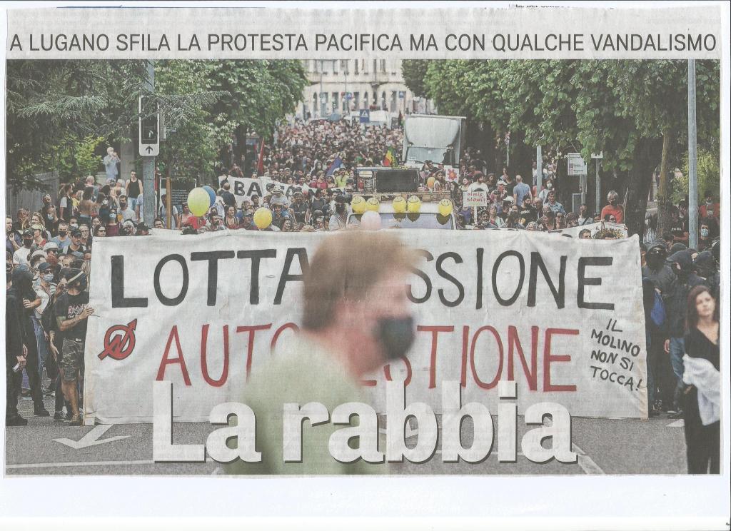 La polizia é intervenuta dopo che i “molinari” hanno occupato lo stabile ex Vanoni Il Municipio aveva trovato per gli “autogestiti” una soluzione sul Piano della Stampa. Si e aperta con bandiere, musica e striscioni in piazza Manzoni. Si é chiusa con lo sgombero dell’ex macello, la giornata degli autogestiti di Lugano. Tutto é precipitato attorno alle 20.30 di ieri, sabato; quando la polizia é intervenuta in forze all’ex Macello e in contemporanea allo stabile abbandonato ex Istituto Vanoni, in via Simen. Dove gli autogestiti sono andati dopo essere partiti da Piazza Manzoni. Saranno state le 18 e 30, più o meno. Un’occupazione temporanea che però ha innescato l’intervento delle forze dell’ordine. In viale Cassarate il dispiegamento di camionette e auto della polizia e stato imponente. All’interno del centro sociale in quel momento si trovavano alcune famiglie con bambini. Il grosso dei manifestanti era invece allo stabile ex Vanoni. Bandiere, musica e striscioni. Il popolo dell’autogestione si era ritrovato in Piazza Manzoni attorno alle 15 per protestare contro lo sgombero, fino a quel momento solo sulla carta, deciso dal Municipio dall’ex macello.