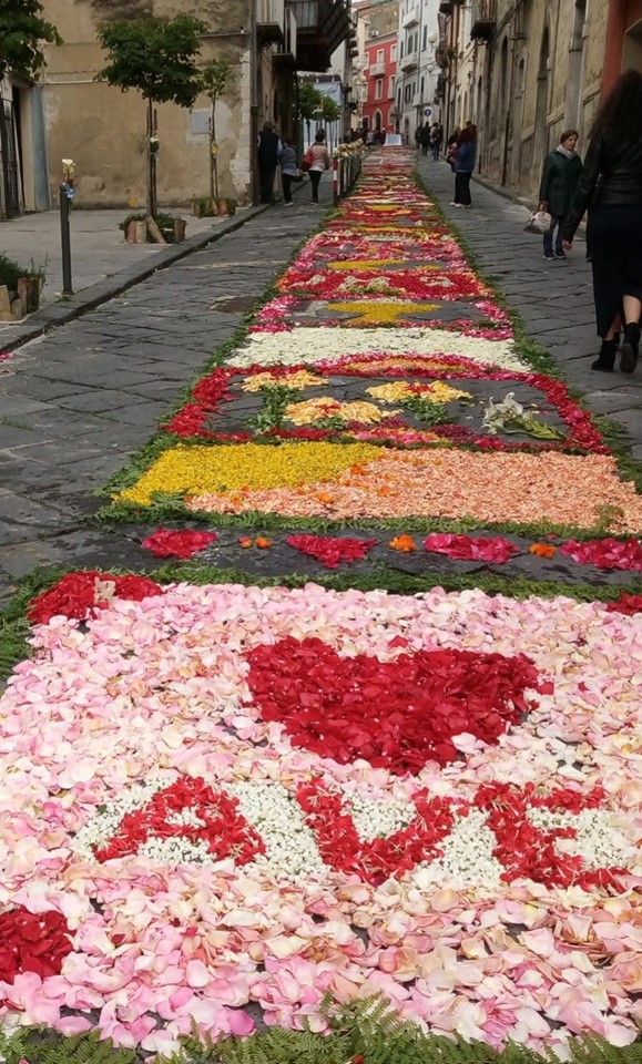 Antonietta Ranallo ringrazia! “Quest’anno hanno avuto difficoltà…pochi fiori e poco tempo a disposizione.” Nonostante le difficoltà: Dice Antonietta Luongo… è bellissimo il tappeto in onore della Madonna dei Monti.