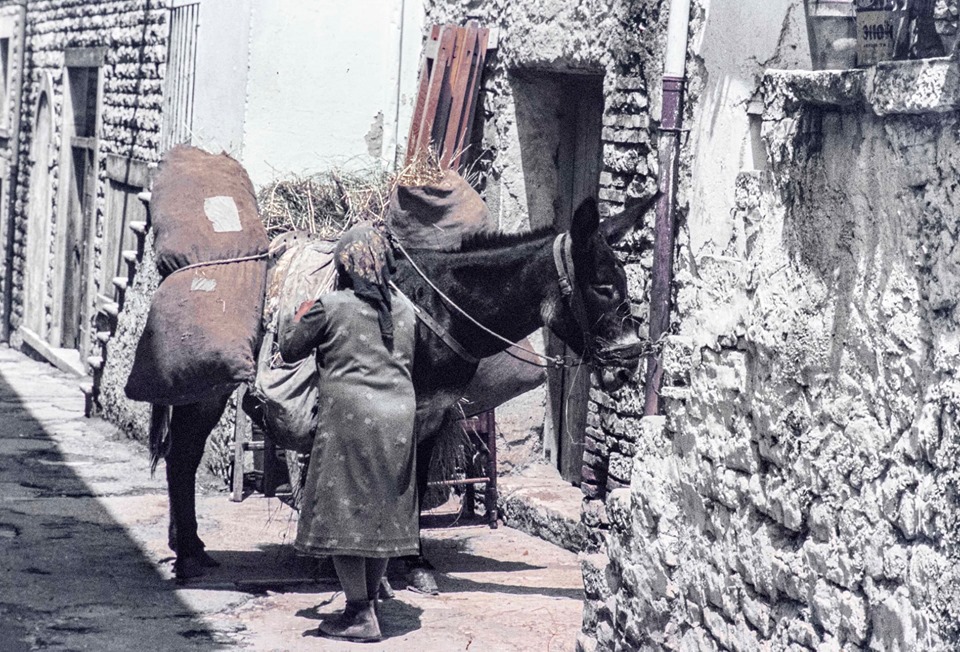 LA SIGNORA SCARICA DELL’ASINA IL FRUTTO DI UNA GIORNATA DI LAVORO. Foto Frasca Michele