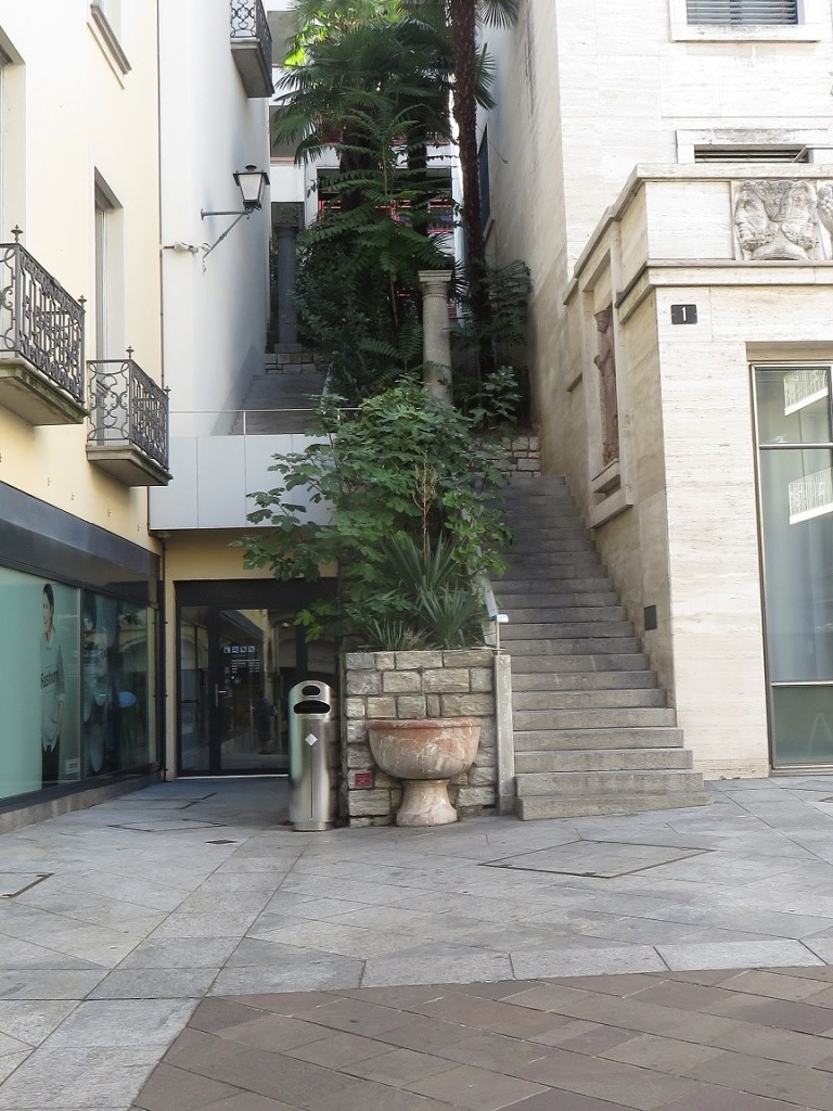 Via Nassa al N.1… Non manca niente… “la fontana le scale per riposarsi all’ombra.. un cestino completo di portacenere per mozziconi di sigarette. Foto Michele Bortone.